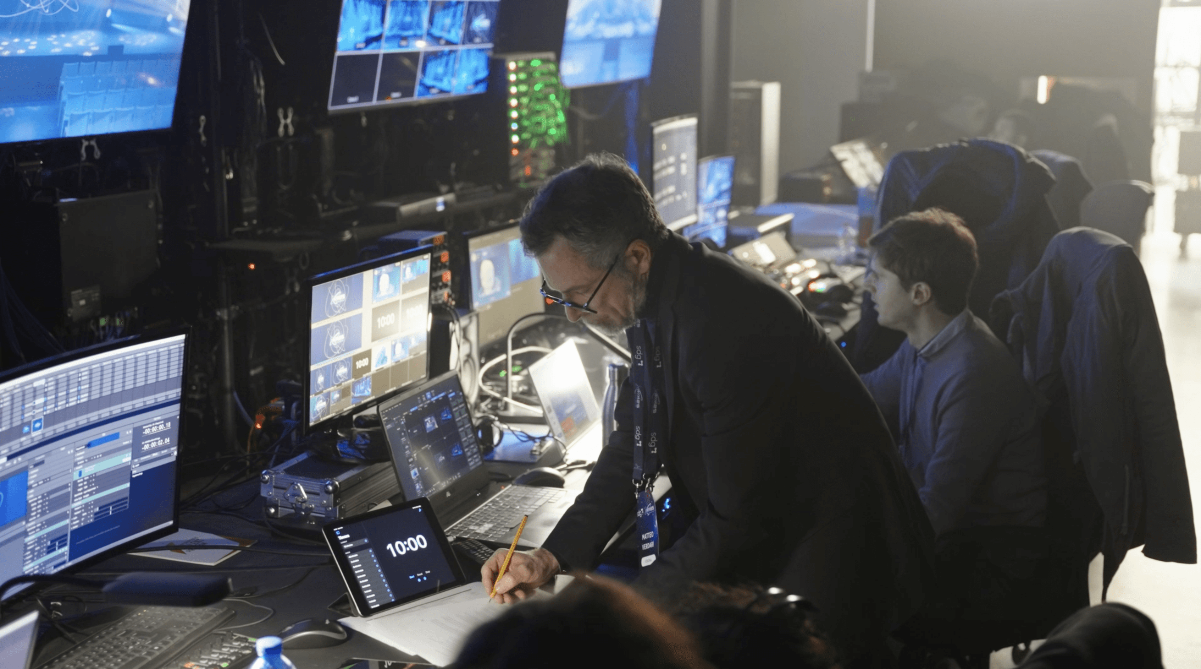 During the event, a fully customized stage setup was designed and implemented, featuring large LED walls and a complete live control room handling real-time direction and visual output.