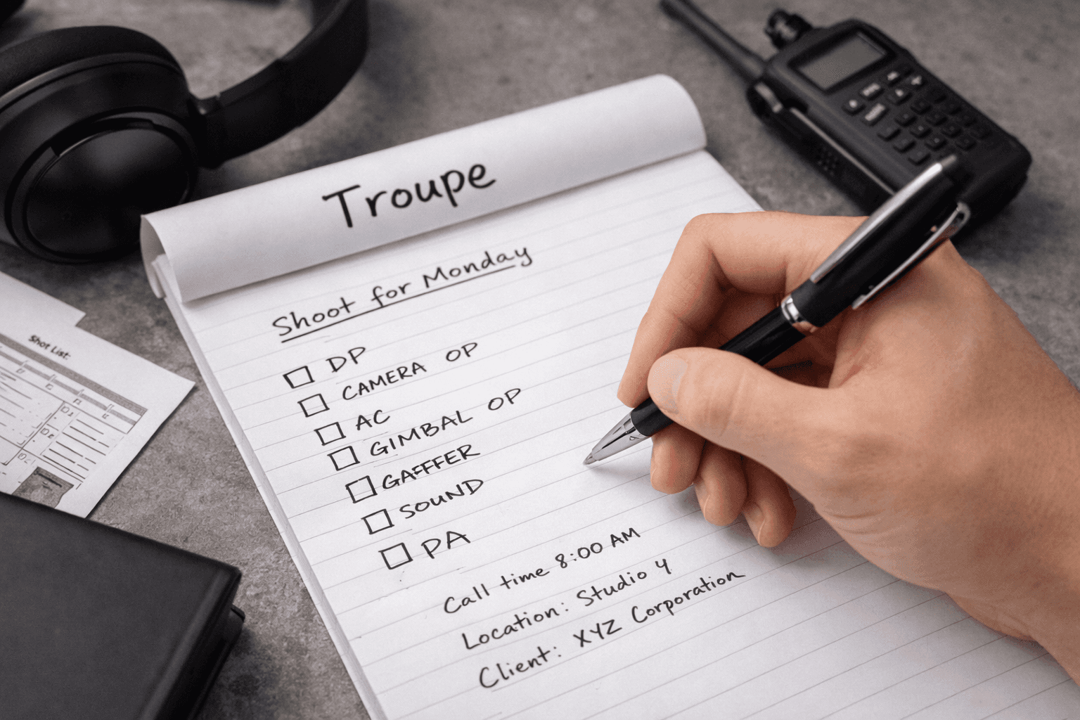 We coordinate crew members, roles, and timing on set, from compact teams to structured productions involving producers and specialized professionals.