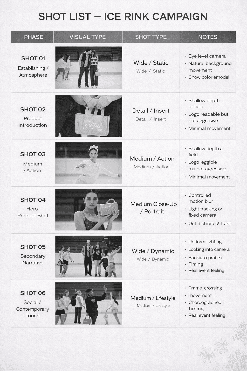 We translate the concept into concrete shots: key frames, camera language, transitions, and a practical shot list tailored to the location and time available.